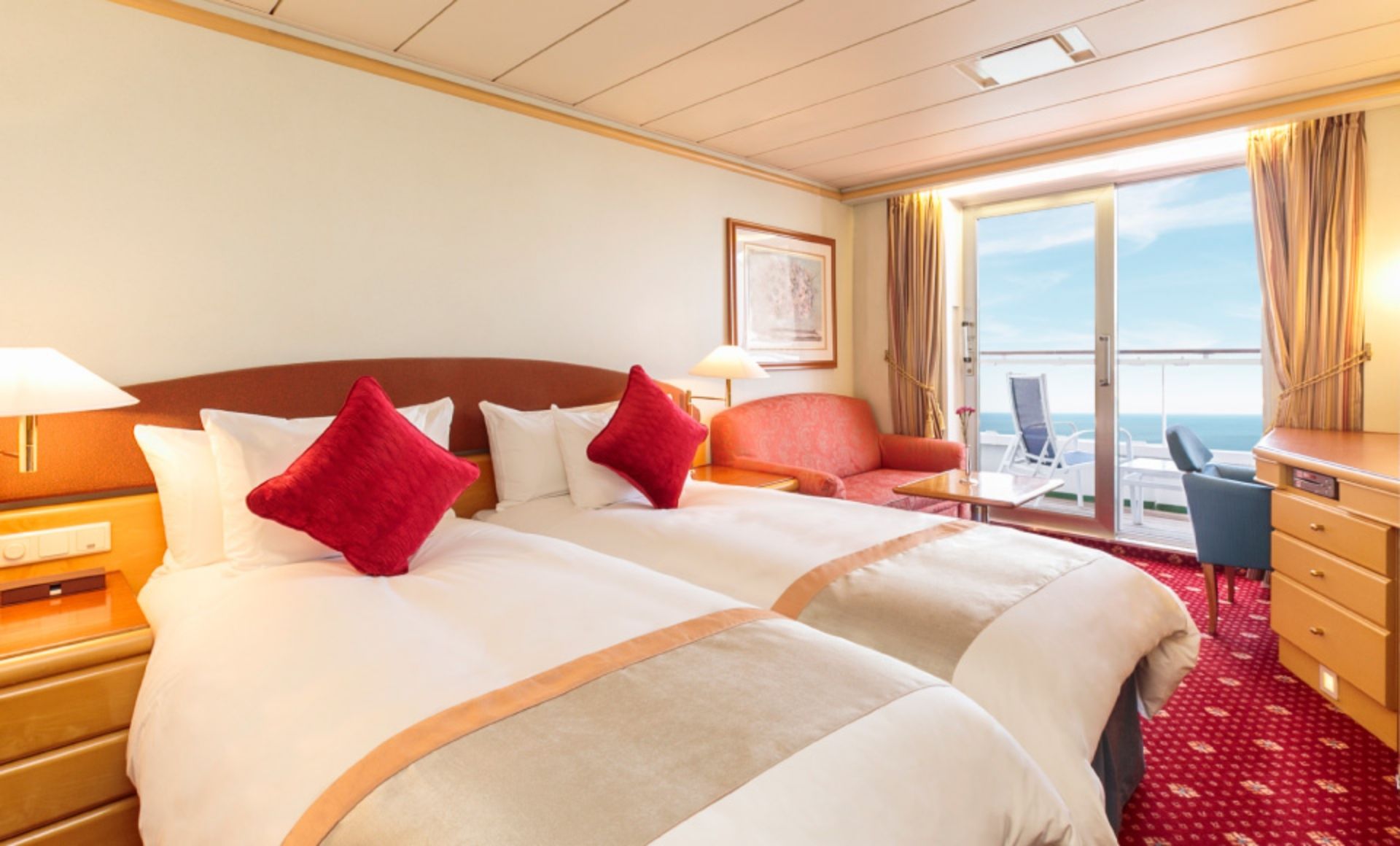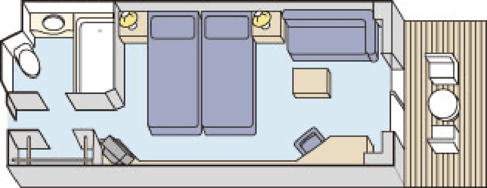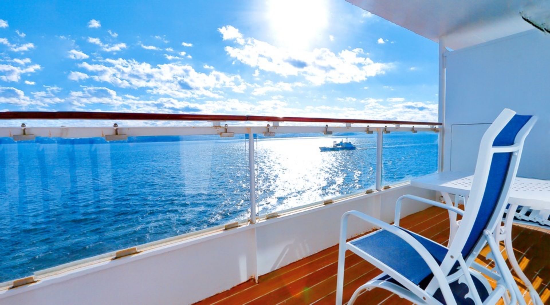 プライベートバルコニーでお客さまだけの特別な時間をお過ごしください。海から見る景色は旅の思い出を忘れられないものにしてくれます。