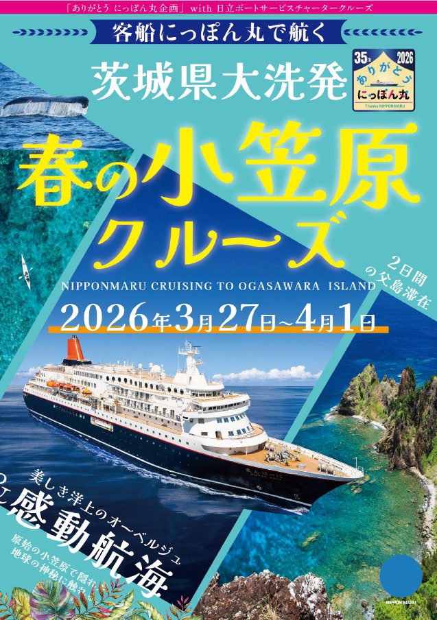 大洗港発横浜着 新潟から往復新幹線・送迎バス付 ありがとう にっぽん丸【グランドスイート】 春の小笠原クルーズ 6日間