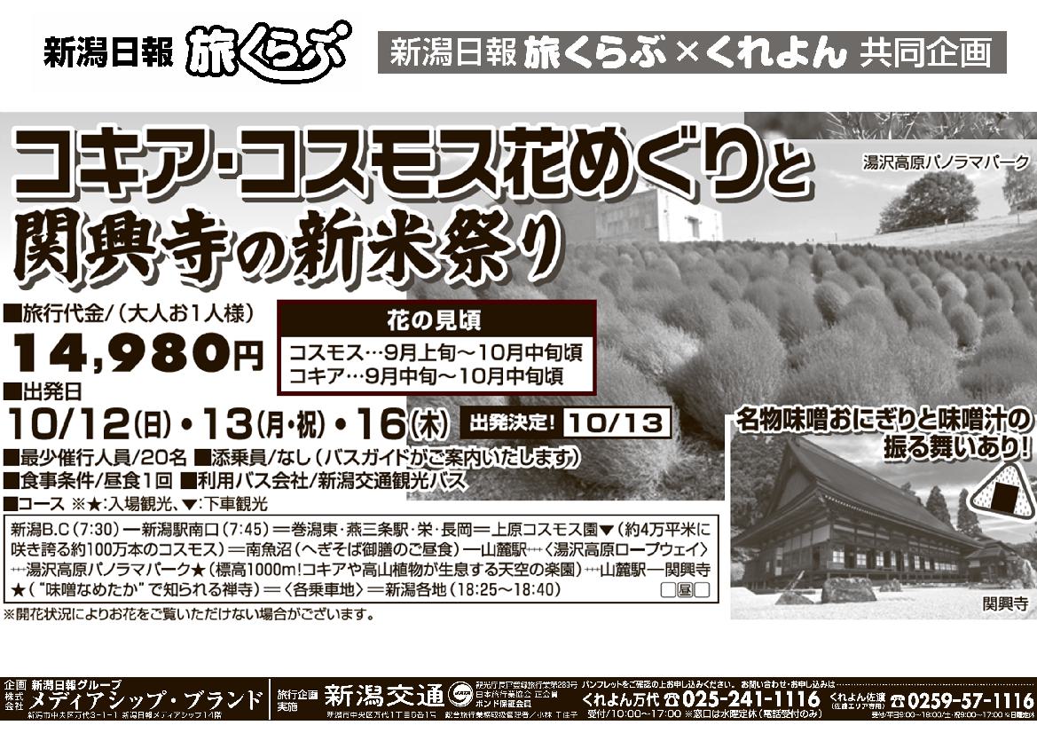 【新潟日報旅くらぶ】 コキア・コスモス花めぐりと関興寺の新米祭り 日帰り