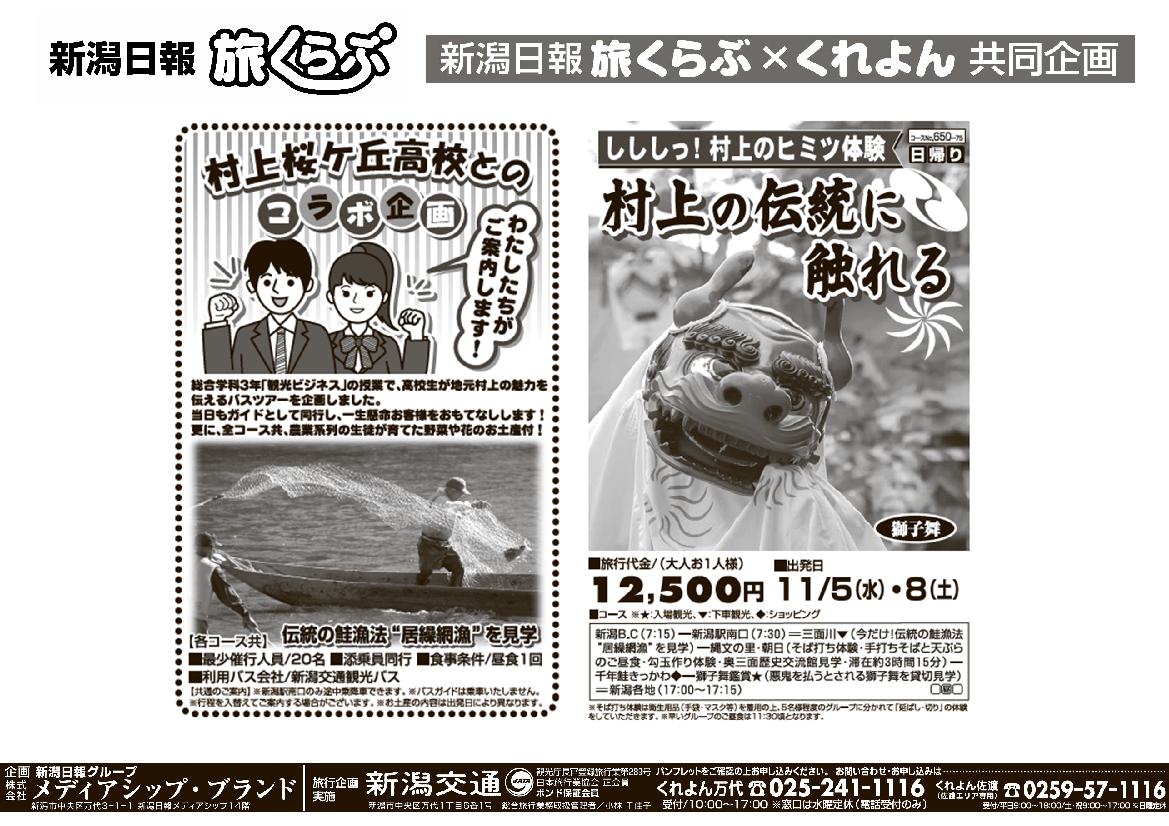 【新潟日報旅くらぶ】 村上の伝統に触れる 村上桜ヶ丘高校×当ツアーコラボ企画 日帰り