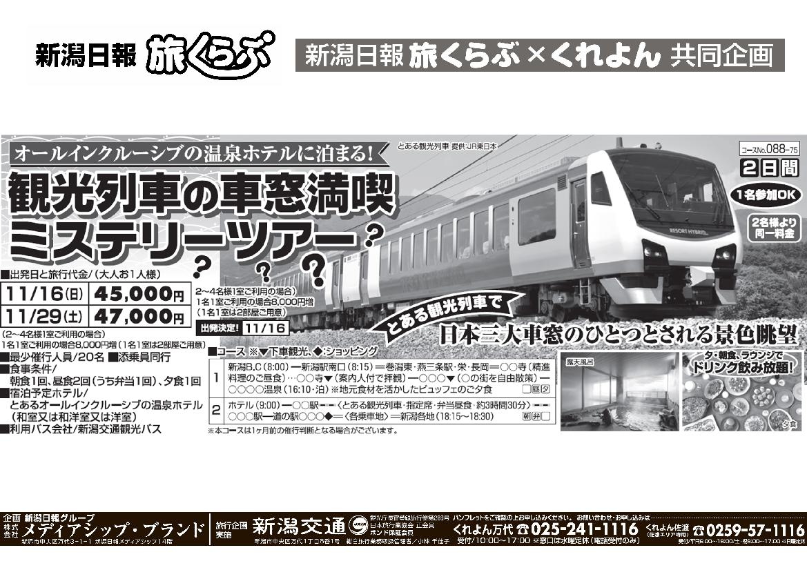 【新潟日報旅くらぶ】 観光列車の車窓満喫ミステリーツアー 2日間