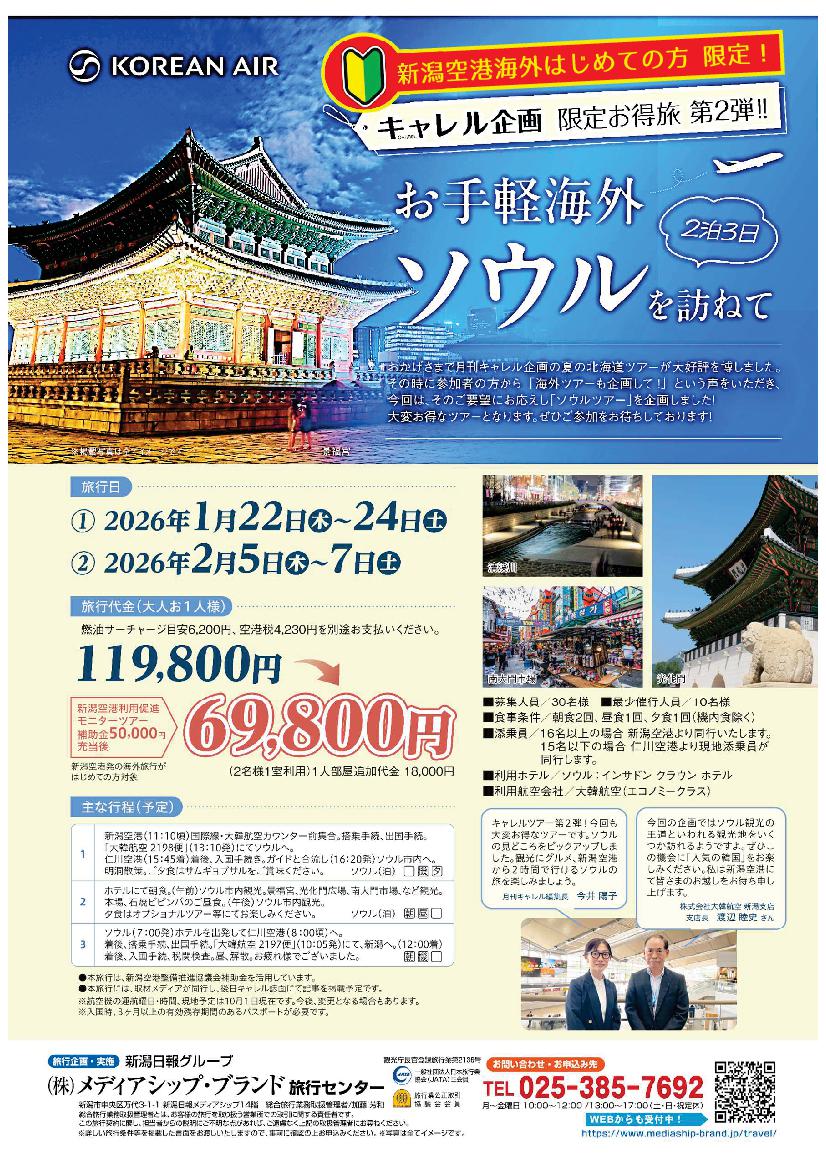 月刊キャレル企画! ★★新潟空港をはじめて利用の方対象★★ 限定お得旅 【海外旅行】お手軽海外 ソウルを訪ねて 3日間