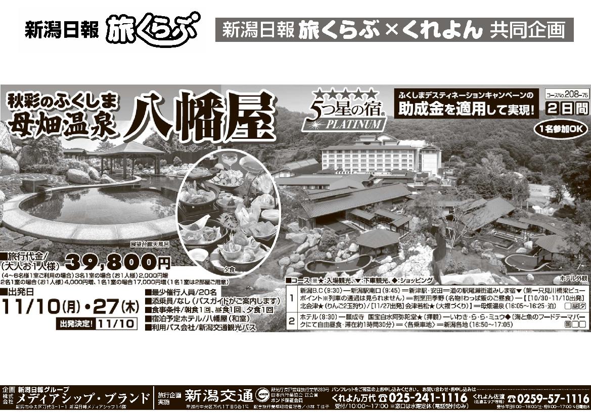【新潟日報旅くらぶ】 秋彩のふくしま母畑温泉 八幡屋 2日間