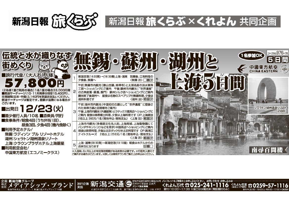 【新潟日報旅くらぶ】 【海外旅行】無錫・蘇州・湖州と上海5日間