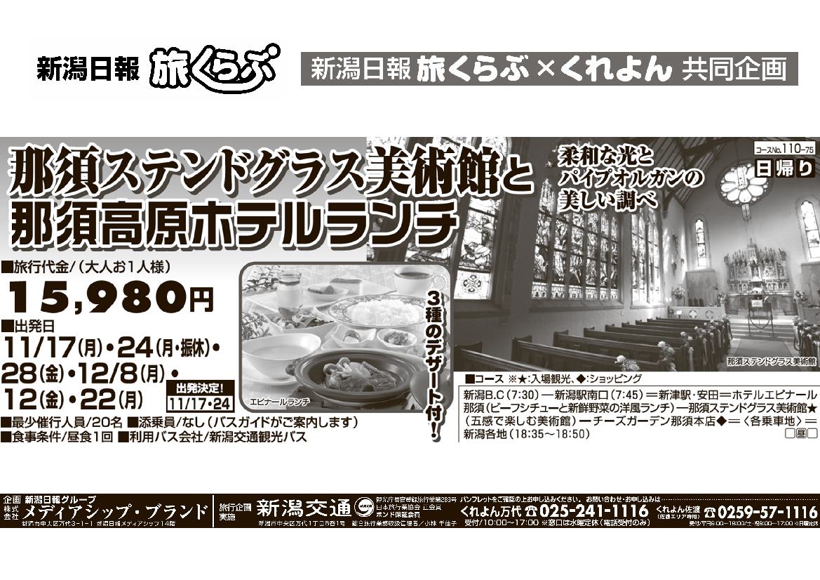 【新潟日報旅くらぶ】 那須ステンドグラス美術館と那須高原ホテルランチ 日帰り