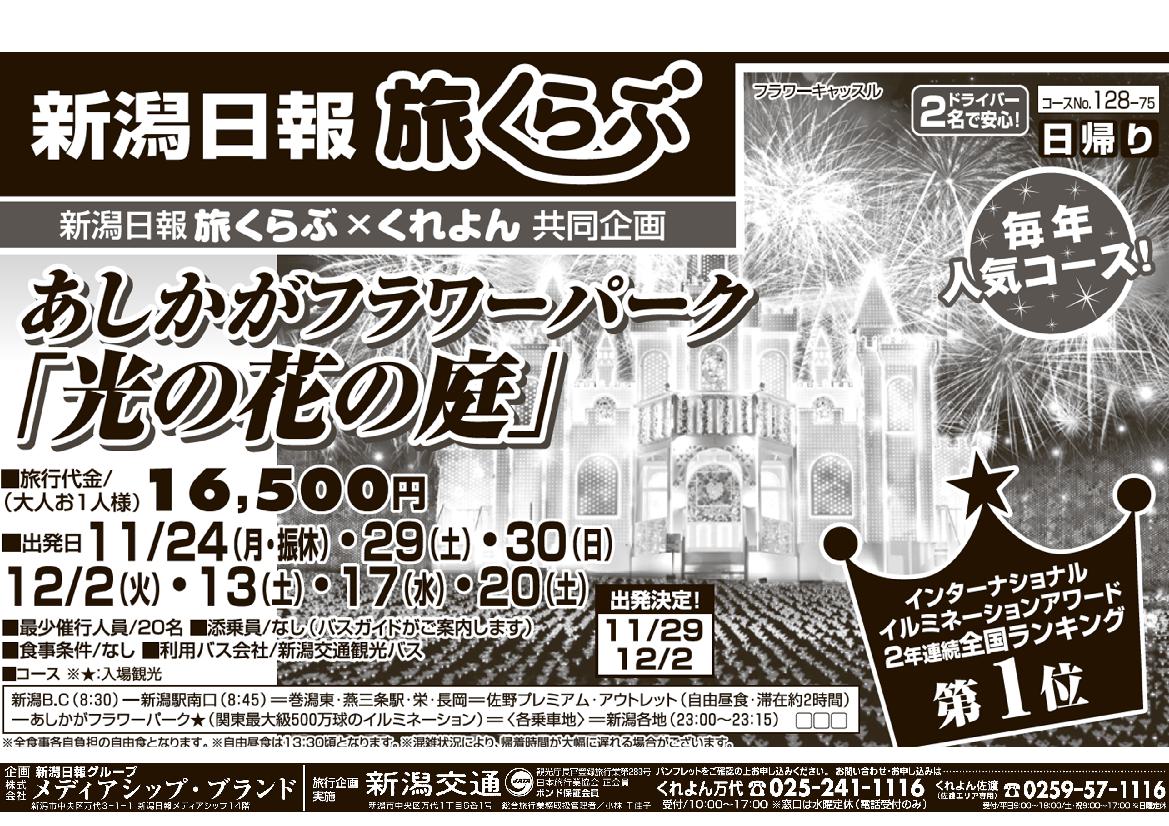 【新潟日報旅くらぶ】 あしかがフラワーパーク「光の花の庭」 日帰り