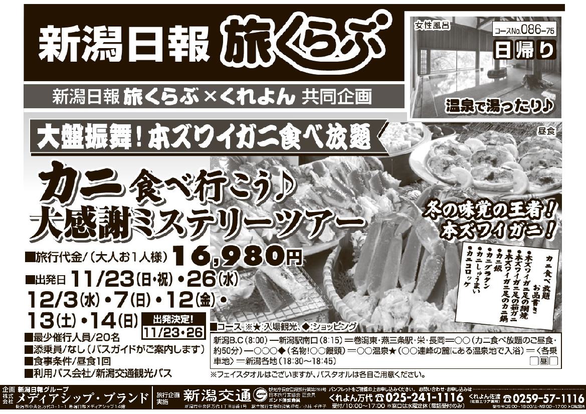 【新潟日報旅くらぶ】 カニ食べ行こう 大感謝祭ミステリーツアー 日帰り