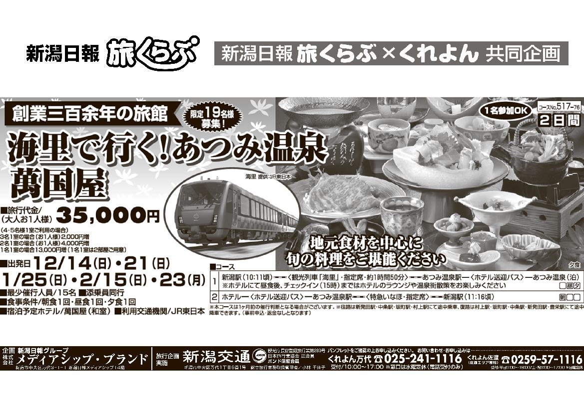 【新潟日報旅くらぶ】 海里で行く!あつみ温泉萬国屋 2日間
