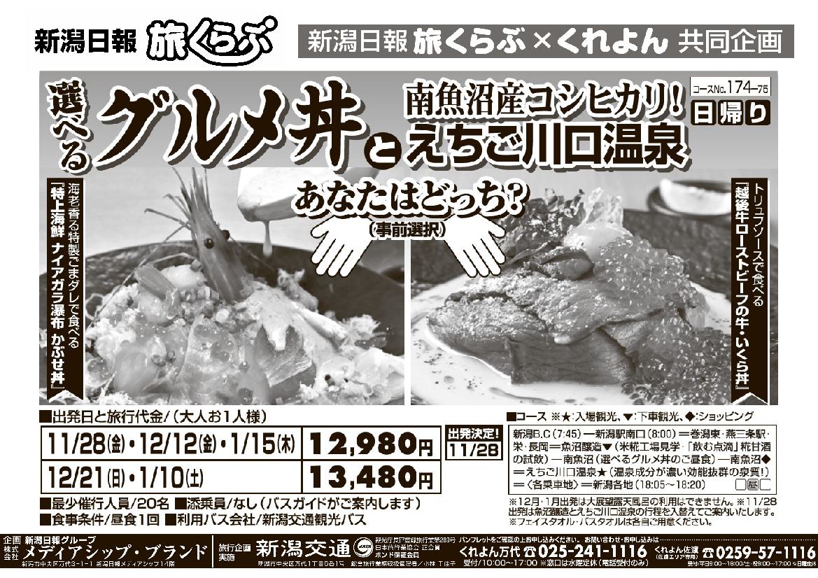 【新潟日報旅くらぶ】 選べるグルメ丼と越後川口温泉 日帰り