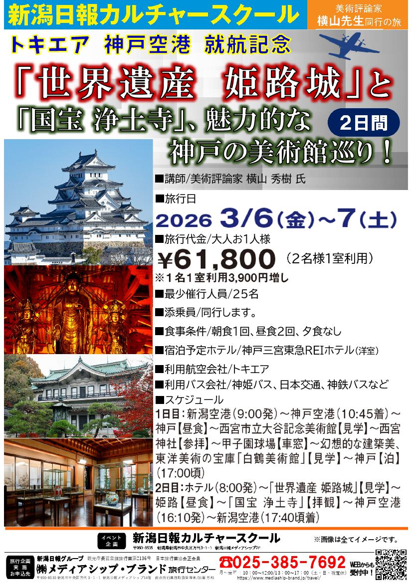 新潟日報カルチャースクール 特選カルチャーツアー 「世界遺産 姫路城」と「国宝 浄土寺」 魅力的な神戸の美術館巡り!! 2日間