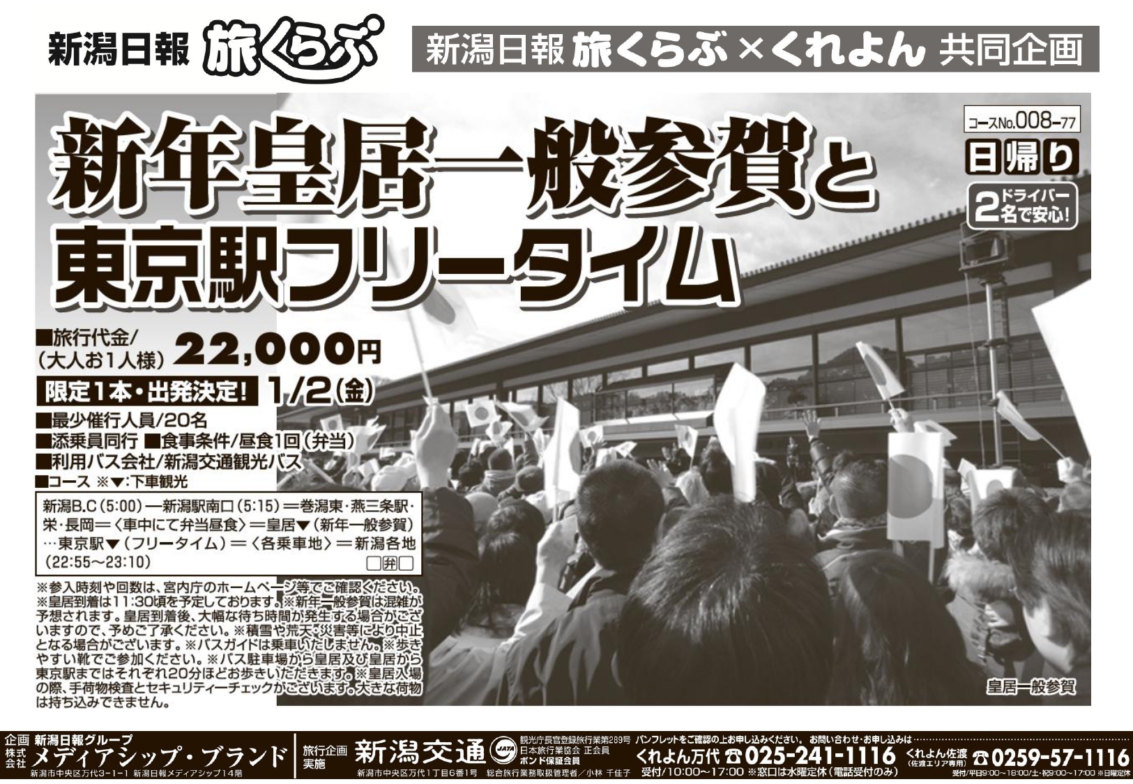 ※このツアーは新潟交通㈱が旅行企画実施をするツアーとなり、受託販売となります。