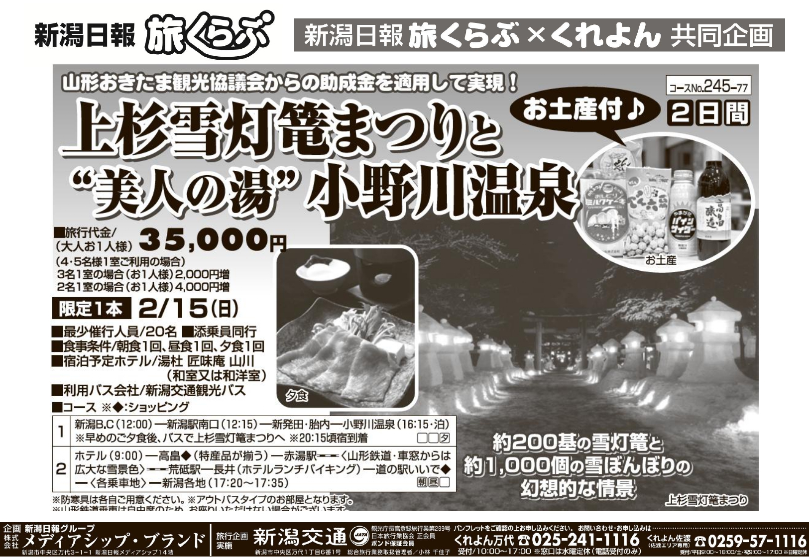 【新潟日報旅くらぶ】 上杉雪灯籠まつりと“美人の湯”小野川温泉 2日間