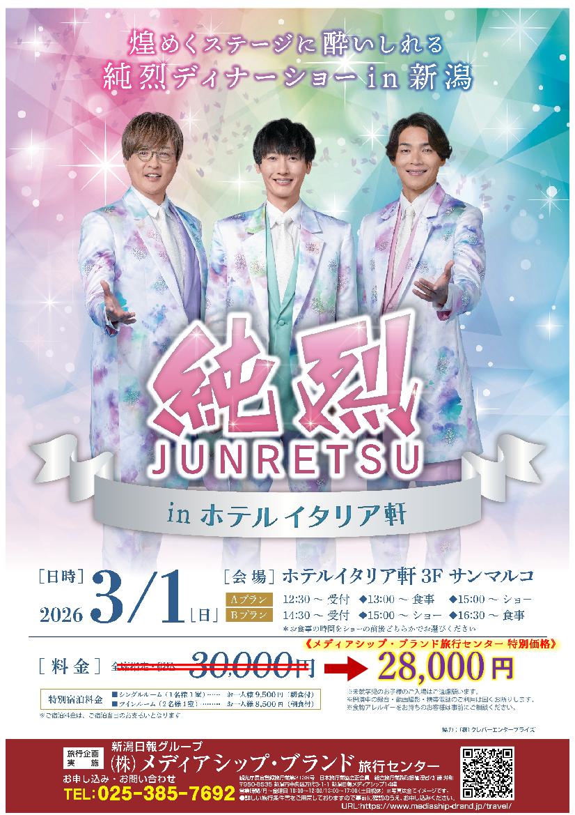 煌めくステージに酔いしれる 純烈ディナーショー in 新潟 純烈 ディナーショー 《ホテルイタリア軒》