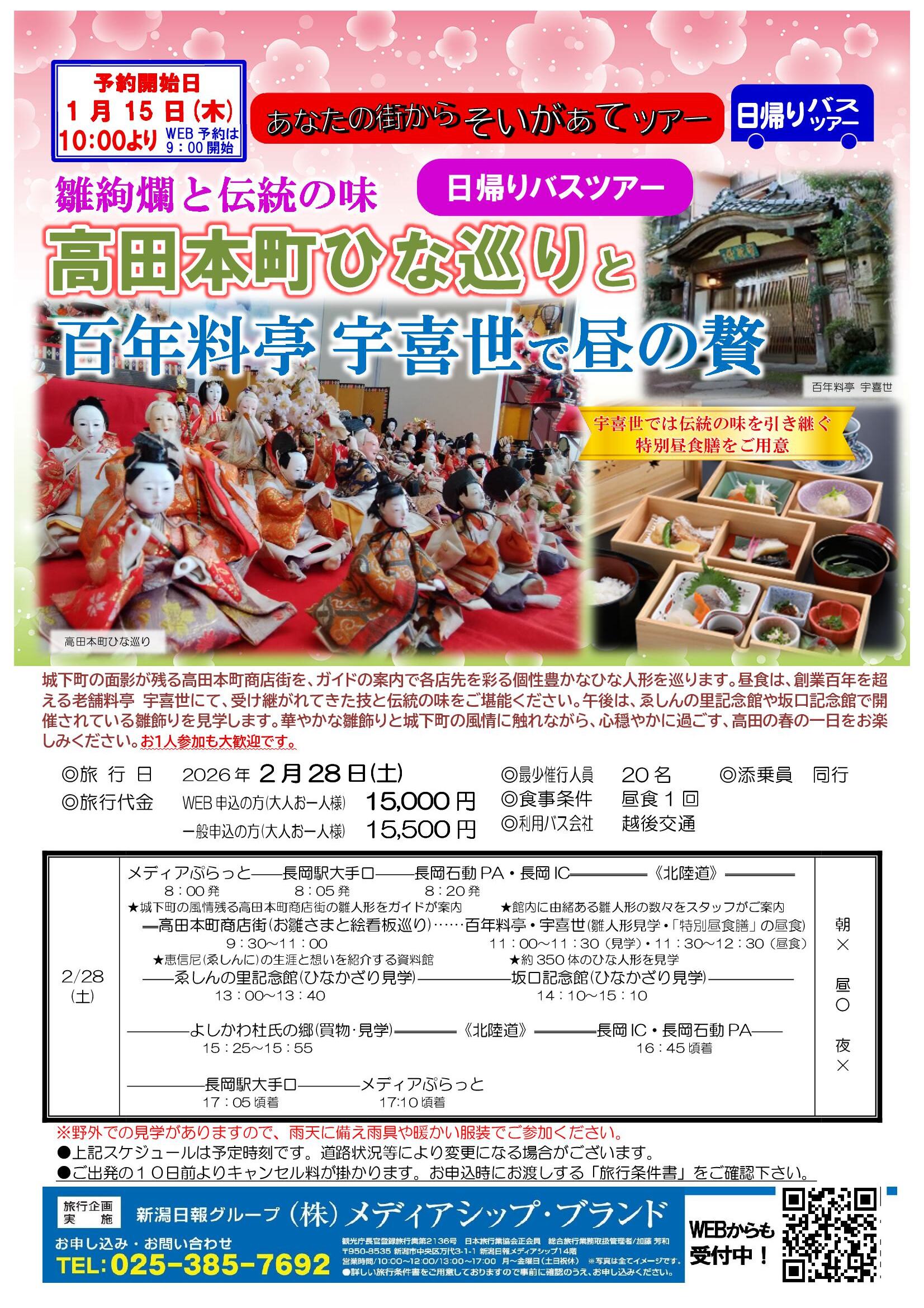 長岡出発 そいがぁてツアー 【長岡出発】雛絢爛と伝統の味 高田本町ひな巡りと百年料亭宇喜世で昼の贅 日帰り
