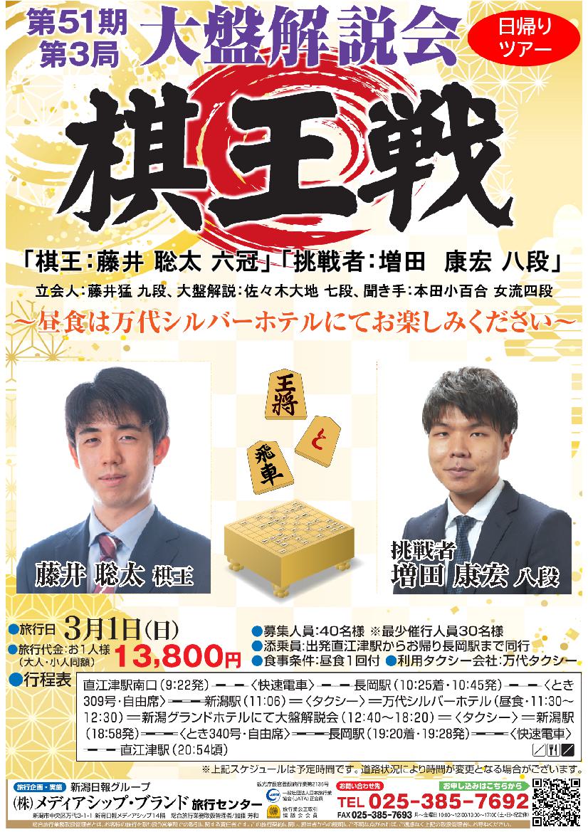 「棋王:藤井 聡太 六冠」「挑戦者:増田 康宏 八段」 第51期「棋王戦」 5番勝負・第3局 大盤解説会 日帰り