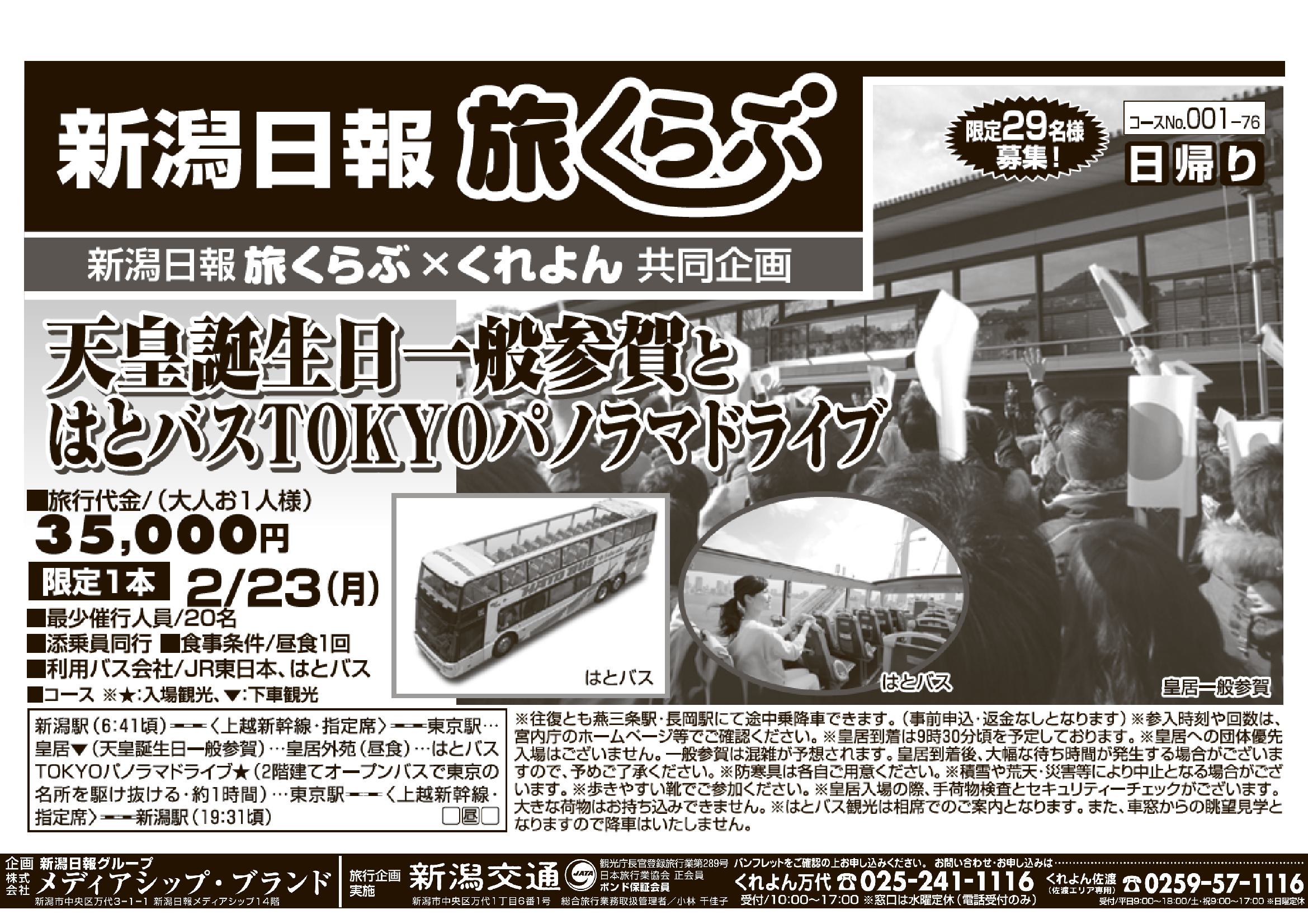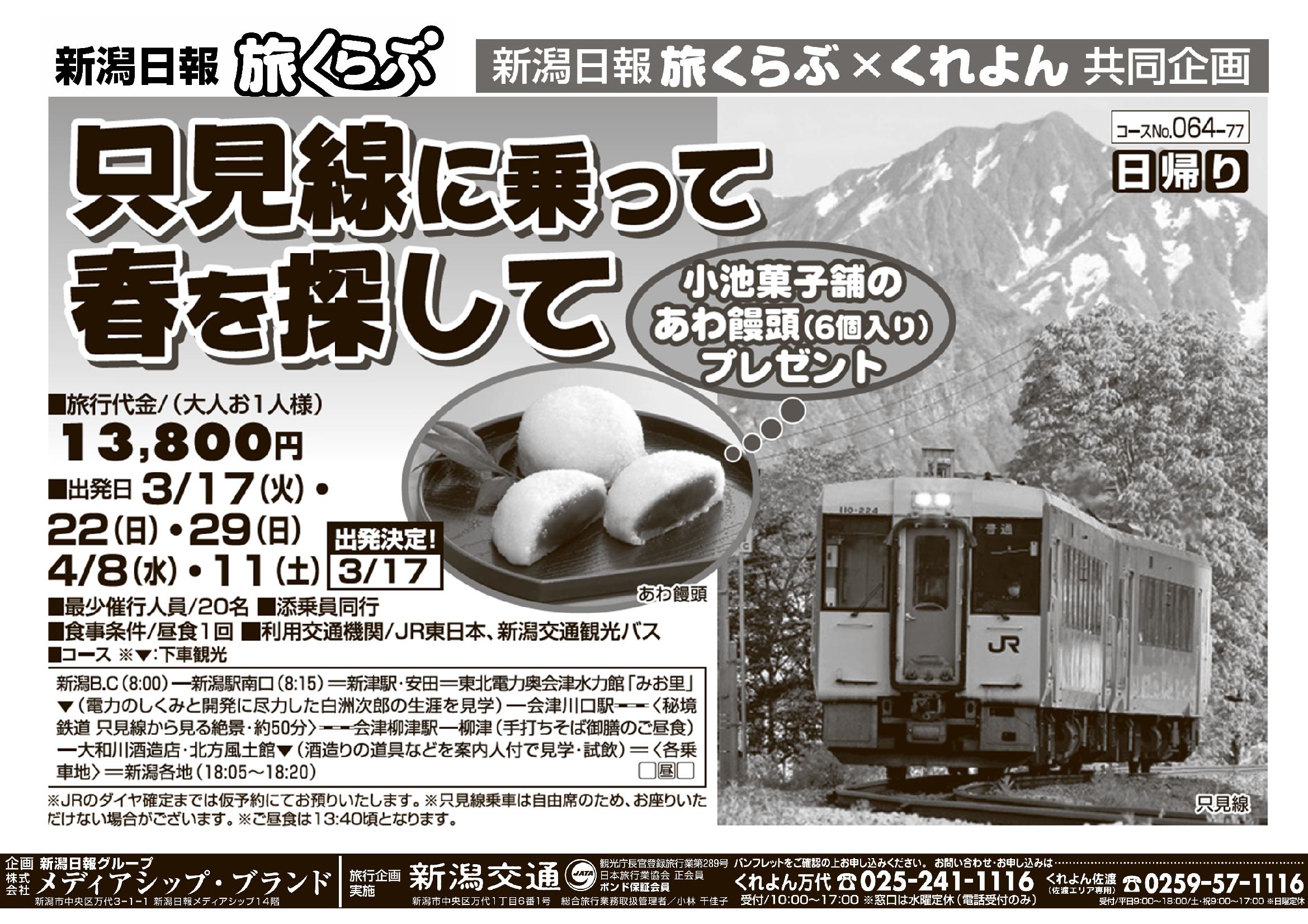 ※このツアーは新潟交通㈱が旅行企画実施をするツアーとなり、受託販売となります。
