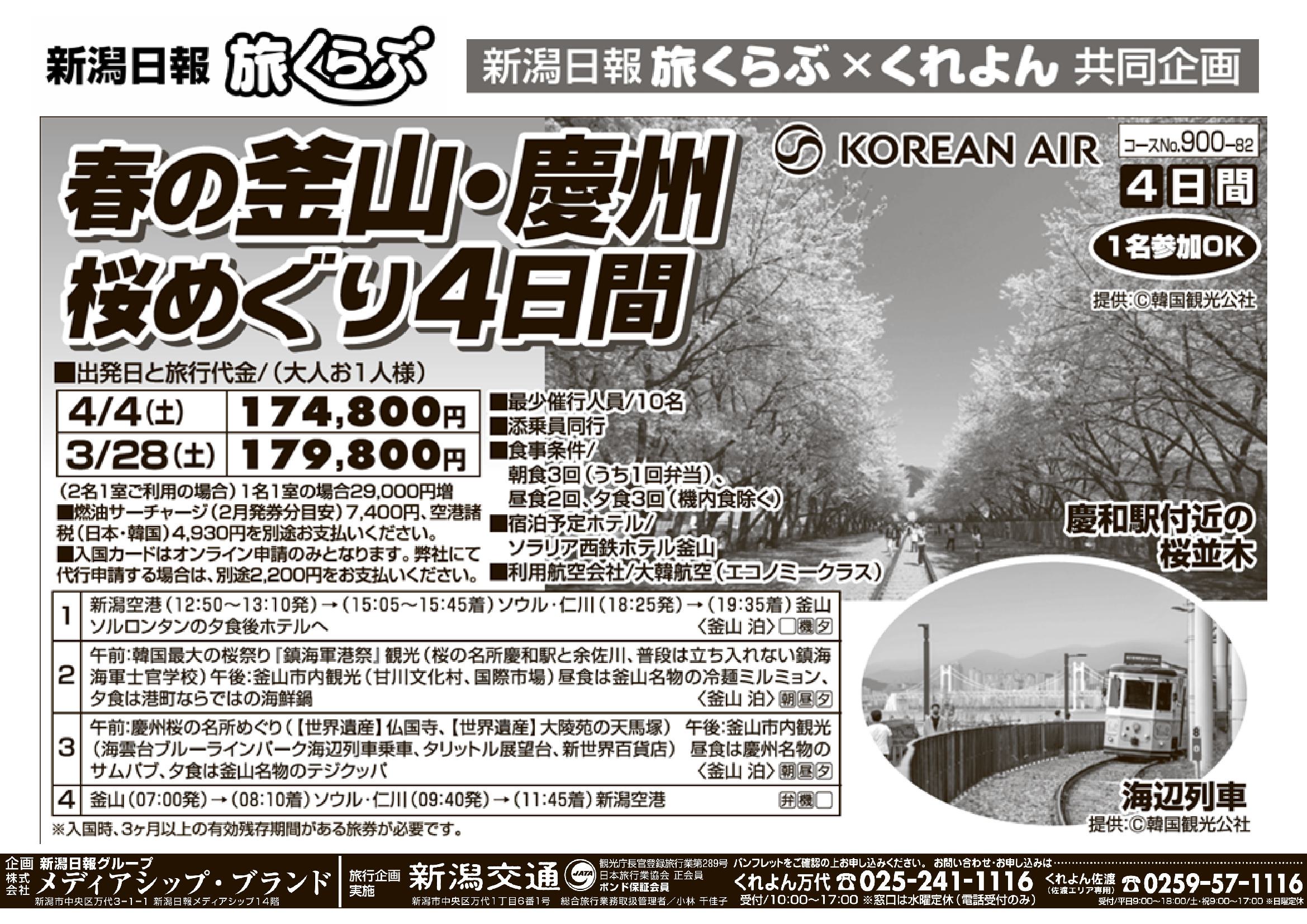 【新潟日報旅くらぶ】 春の釜山・慶州桜めぐり 4日間