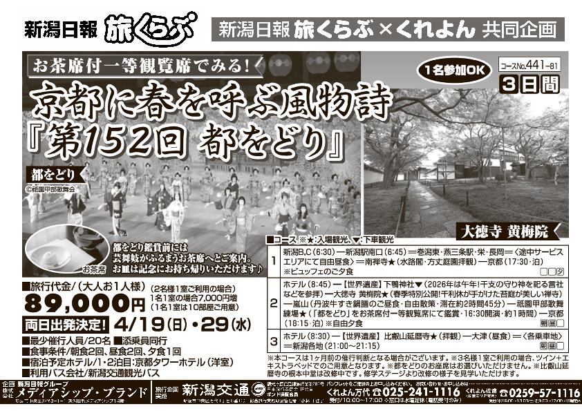 【新潟日報旅くらぶ】 京都に春を呼ぶ風物語『第152回 都をどり』 3日間