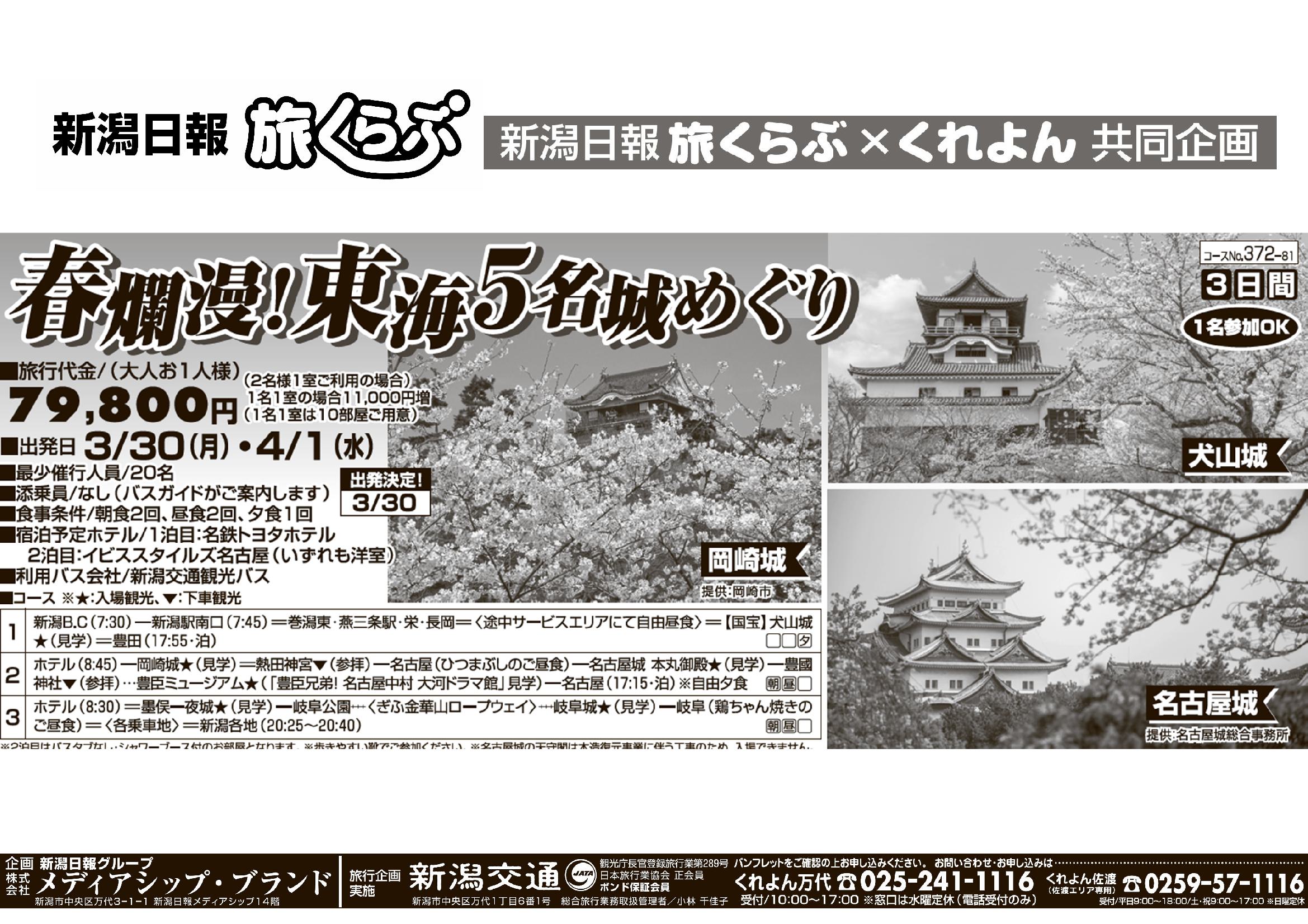 【新潟日報旅くらぶ】 春爛漫!東海5名城めぐり 3日間