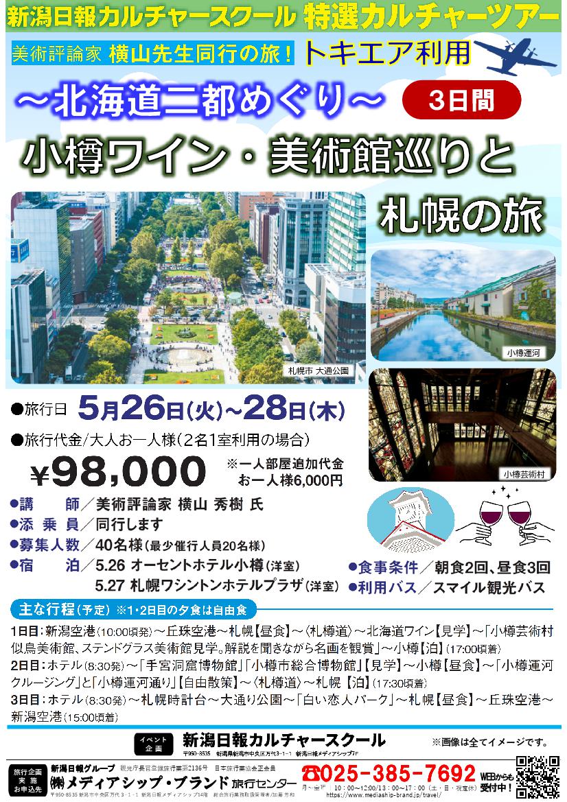 新潟日報カルチャースクール 特選カルチャーツアー 北海道ニ都めぐり ~小樽ワイン・美術館巡りと札幌の旅 3日間
