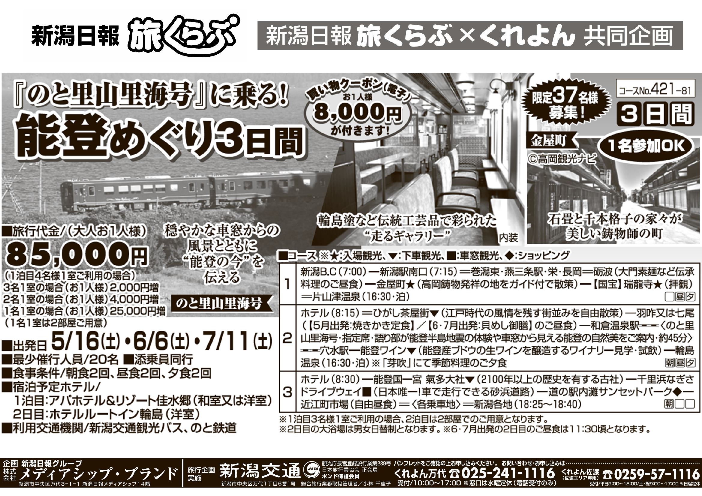 ※このツアーは新潟交通㈱が旅行企画実施をするツアーとなり、受託販売となります。